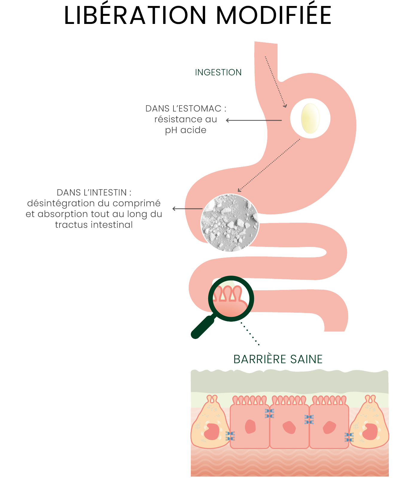 Soutien à l’intégrité de la barrière intestinale. Avec Boswellia, Zinc et Vitamine B2, pour le maintien de muqueuses saines.